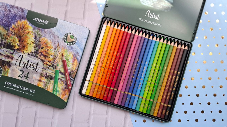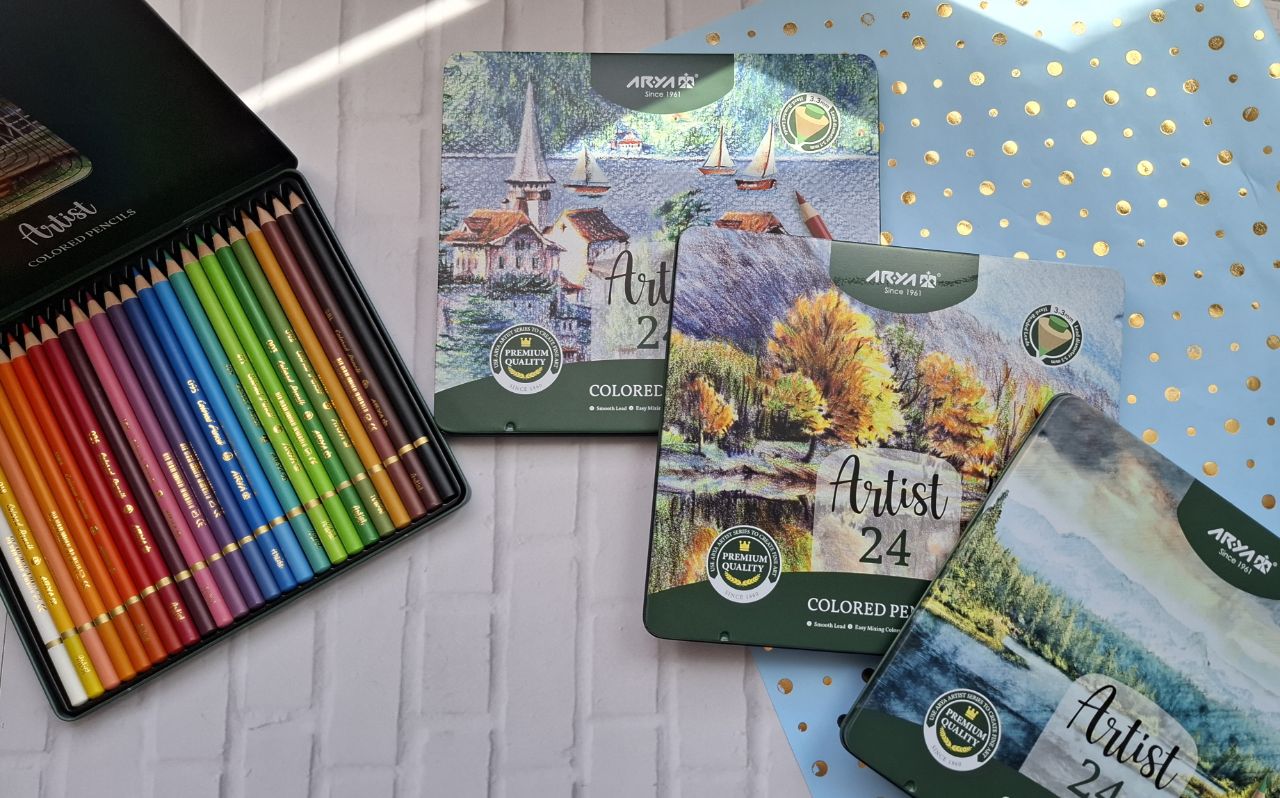 مدادرنگی ۲۴ رنگ جعبه فلزی آریا