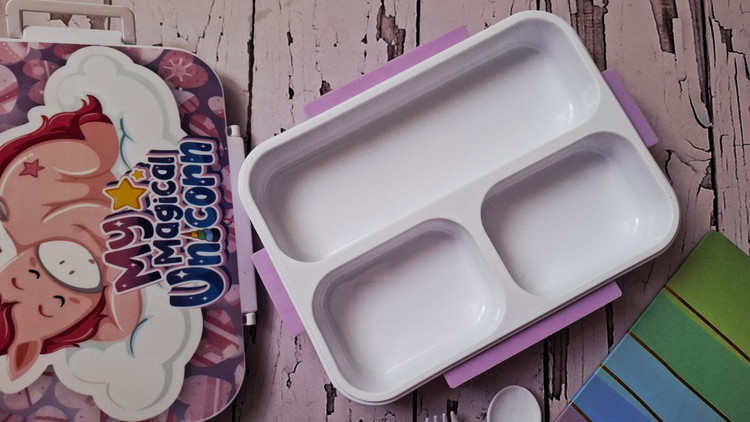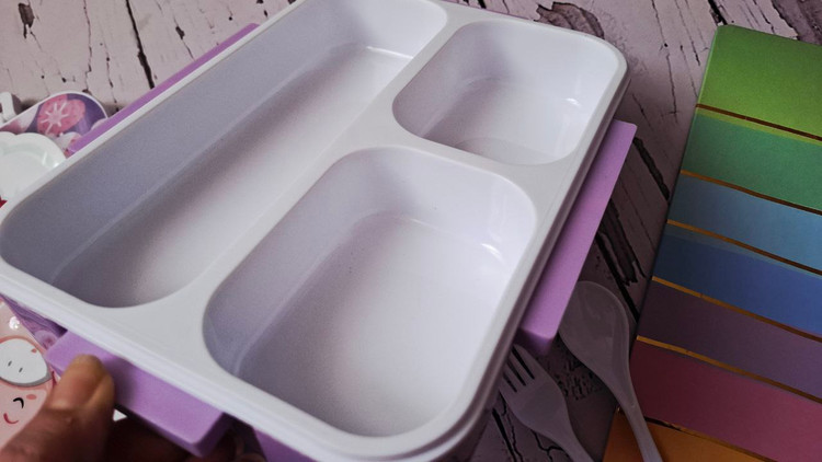 😀ی ظرف غذای جذاب 3 قسمتی همراه با قاشق چنگال
