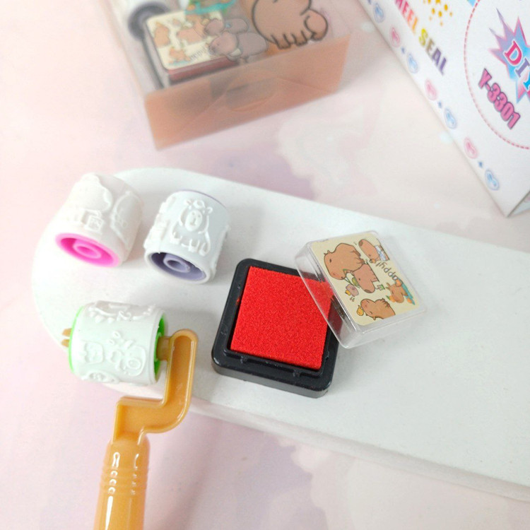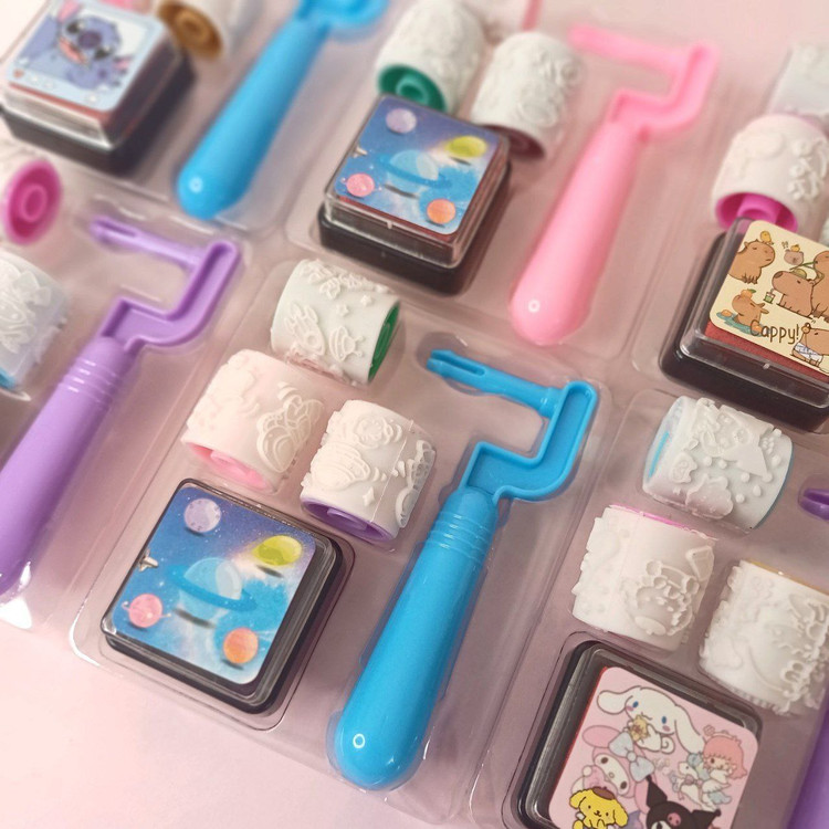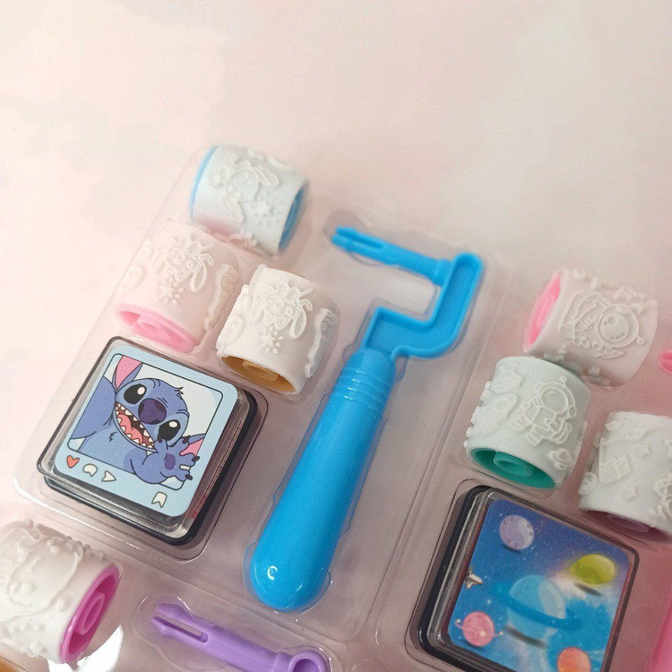🐵هر بسته شامل یک عدد دسته ، 3 عدد غلطک با طرح های جذاب و یک عدد استامپ
