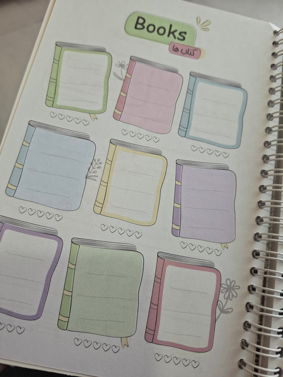 🌍محتوای صفحات : اطلاعات فردی ، سلامتی ، سریال های مورد علاقه ، موسیقی ، ردیاب عادت ، کتاب های مورد علاقه ، برنامه های مورد علاقه و 60 برگ برنامه ریزی روزانه
