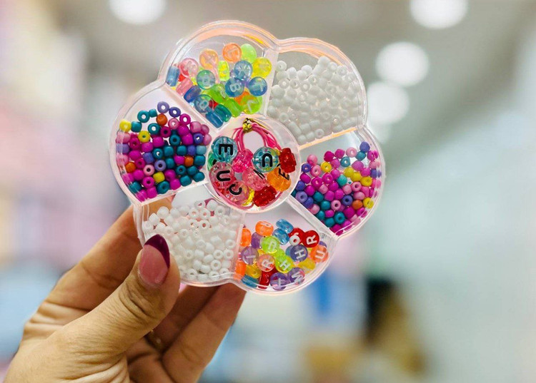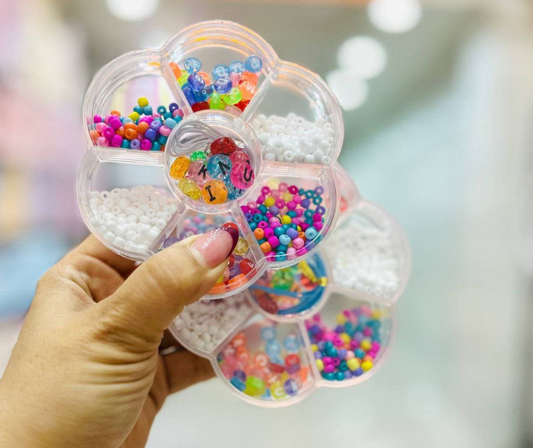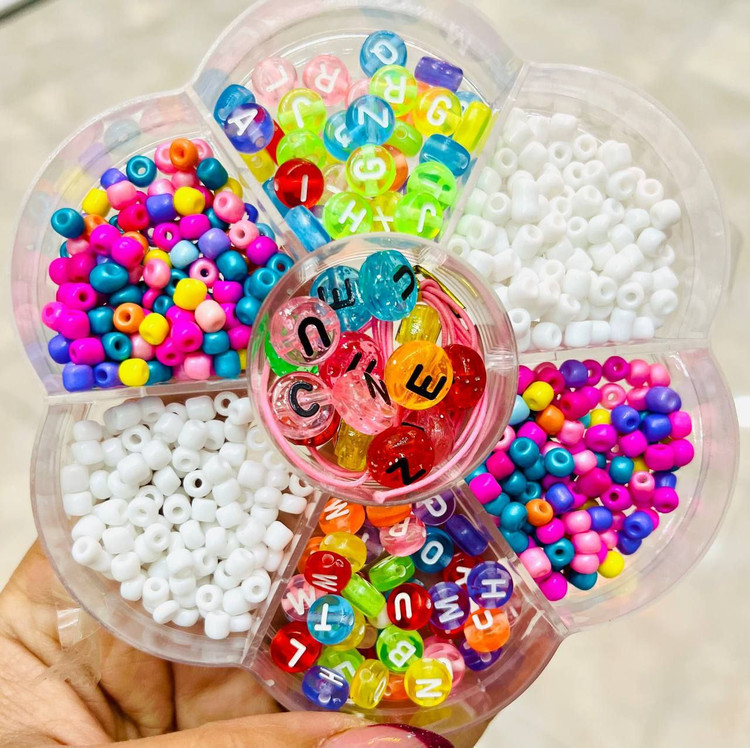 💕دارای مهره های حروف ریز و درشتد، مهره های گرد رنگی و کش برای ساخت دستبند