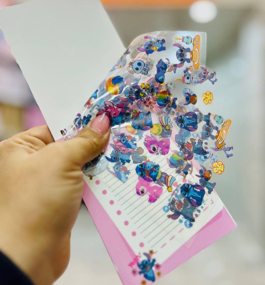 😀دفترچه استیکر دار 😀ی دفترچه جذاب با 4 ورق استیکر شفاف ضد اب و 14 ورق برگه یادداشت های حاشیه دار جذاب 😀تم های کاپی بارا ، کرومی ، استیج و لبوبو 😀ابعاد 8 در 11 سانت 😀ساخت چین 😀فنردوبل 😀😀😀😀😀🙂🙂🙂